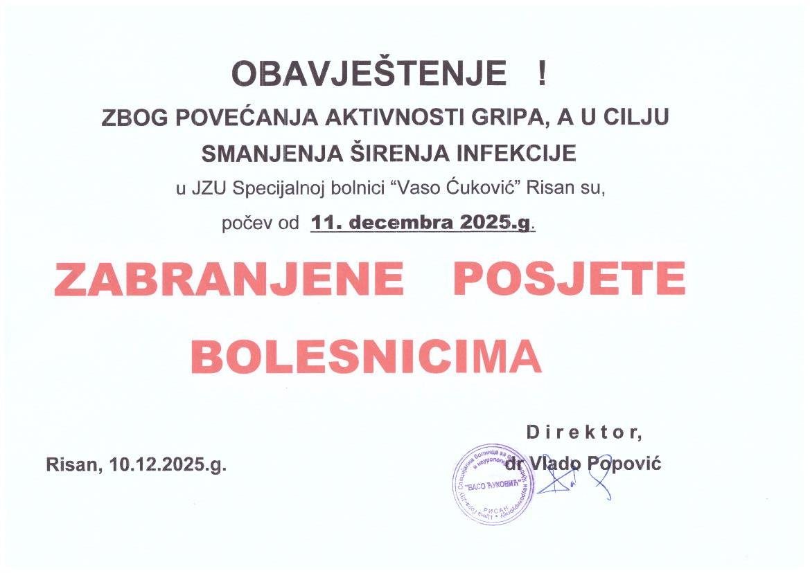 U Specijalnoj bolnici "Vaso Ćuković" u Risnu, 20.12.2024. godine je urađena operacija ugradnje endoproteze lakta, prvi put u Crnoj Gori. Opširnije...